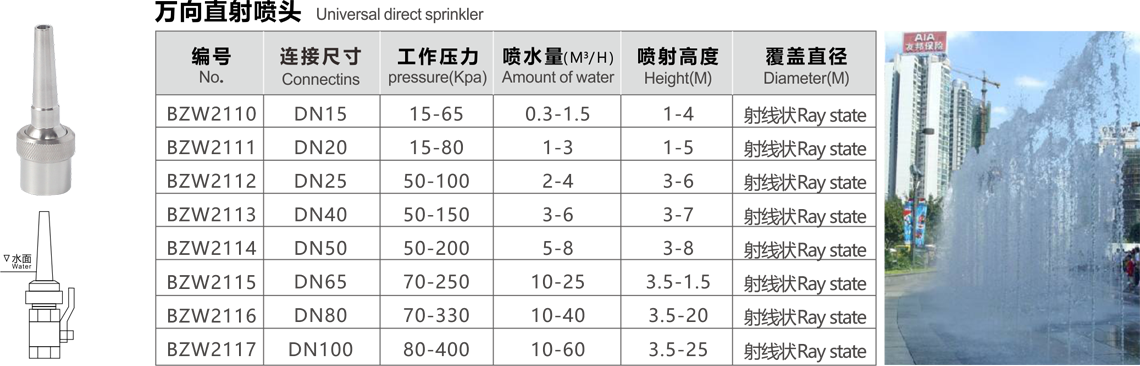 Features: water jet concentration, straight into the sky, as on the nine days on the moon, the momentum spectacular, so that people suddenly have a kind of Hao ran righteousness, full of passion, singing into the future of the fight Haoqing. The utility model is commonly used as the main nozzle for spraying water, and can also be used as a single spraying head.