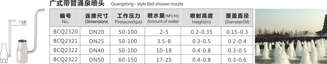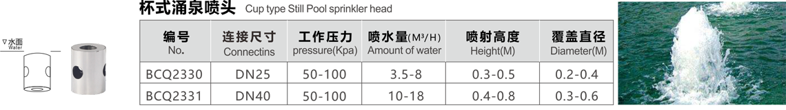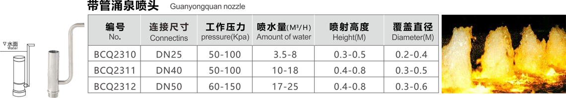 特點:噴泉時保持一定高度,水柱粗獷挺拔,涌出的水柱很壯觀,無吸氣管。