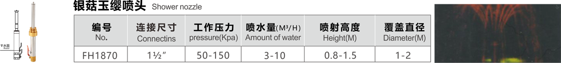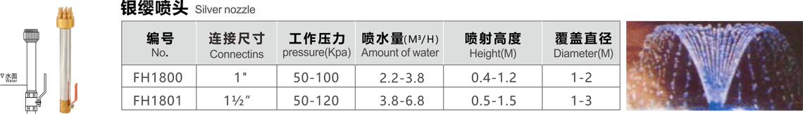 特點(diǎn):噴嘴一圈,噴水時(shí)形成一圈外向的拋物線水柱,噴水形成酷似纓穗,銀光閃閃。